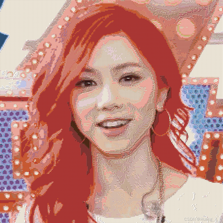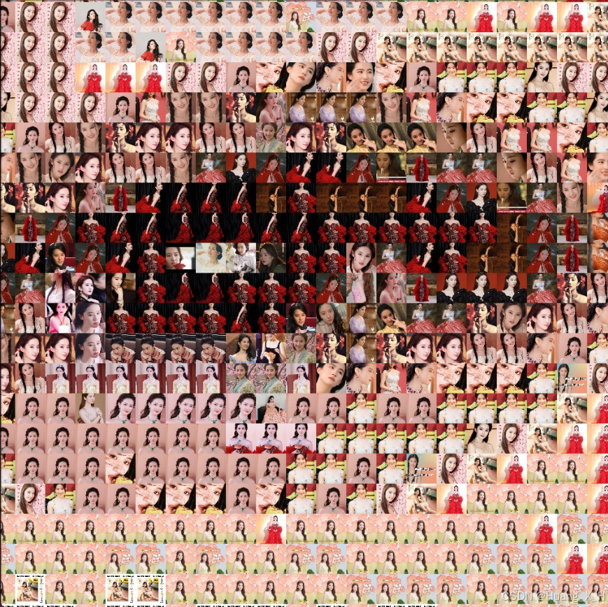 此图是生成的图片的眼睛部分放大后的截图,放大之后,可以看出,实际上是若干张刘亦菲的图片组成